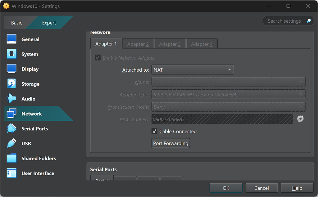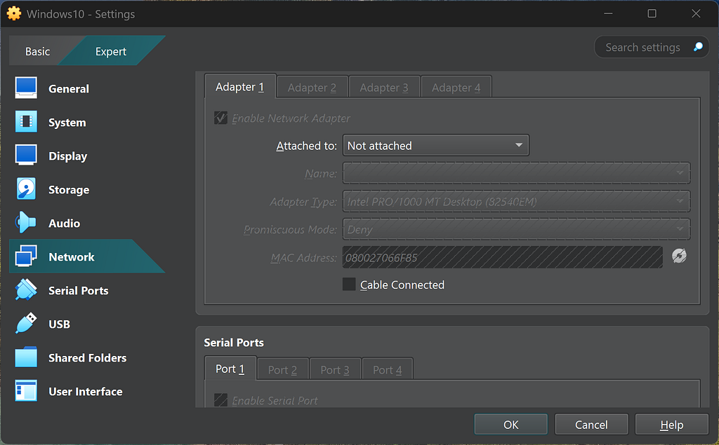 - Turn Off the internet connection on your VM