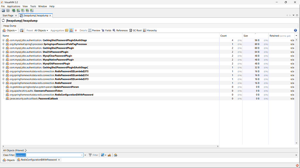 You can also analyze and monitor it using VisualVM to inspect memory usage, identify objects and detect sensitive data or memory-related issues.