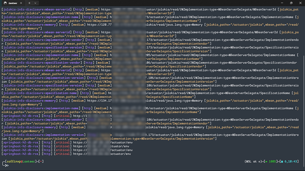 Nuclei is a fast, template-based scanner that runs reusable YAML checks (requests and matchers) across multiple hosts in parallel. I simply place my list of IPs or domains in a file and use the following command to scan for exposed Actuator endpoints.
