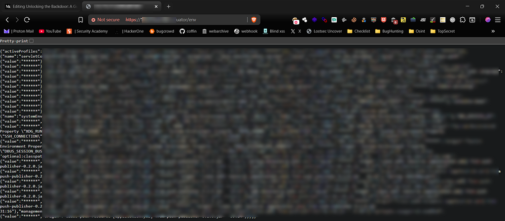 Once I gain access to a sensitive endpoint, the final step is to demonstrate the potential impact of the exposure. Analyzing the Heapdump for Secrets..