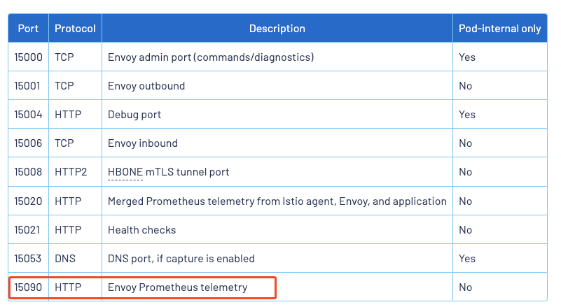 默认情况下 Istio 会将应用 Pod 的暴露出来的 metrics 和 sidecar 的指标合并在一起,然后暴露为 :15020/stats/prometheus 这个 endpoint。