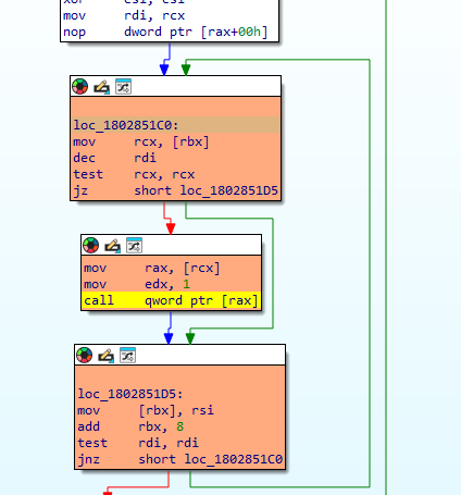 After the jmp rax of Figure 4 jumps to 0x0000000180008e5f, the pop rax will safely consume the return address that had been pushed onto the stack by the call in Figure 3, and execution will continue with ret. The net effect is that we’ve turned the code in Figure 3 into this gadget: