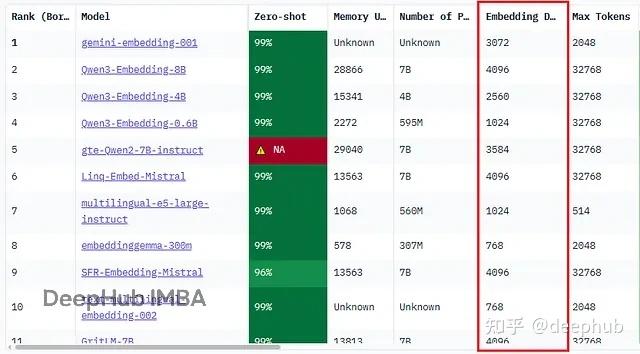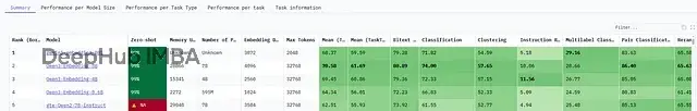 Hugging Face的MTEB(Massive Text Embedding Benchmark)基准测试把这些参数都列得很清楚,方便对比不同模型在各类任务上的表现,也能看出它们怎么处理语义相似性、检索和多语言场景。