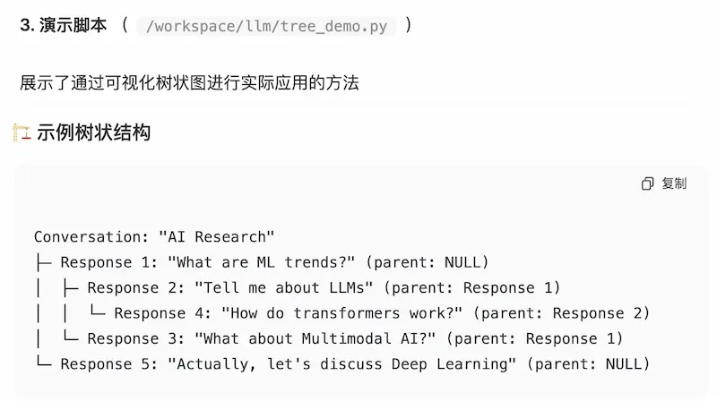 2、它目前使用线性集合,保存单个对话和响应。你尝试在响应表中添加一个 parentresponseid 列,并通过该列将对话的响应建模为树状结构。