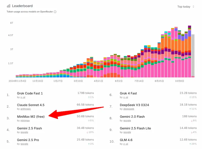 OpenRouter 的大模型全球调用量排名,它这周排在第三。