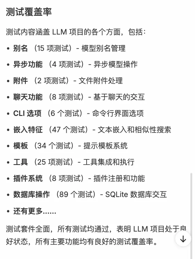 拉取代码仓库 https://github.com/simonw/llm ,然后通过下面的命令运行测试用例。