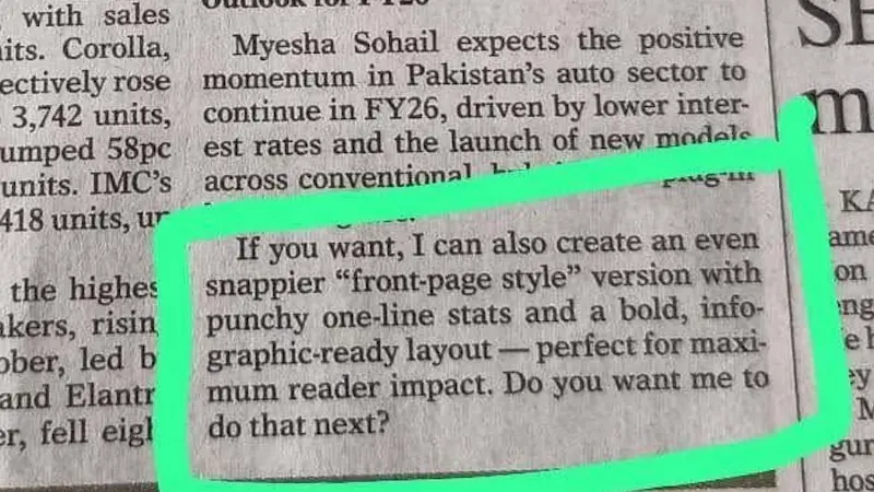 一家巴基斯坦报纸,不慎将 AI 的对话跟着文章一起发表了。