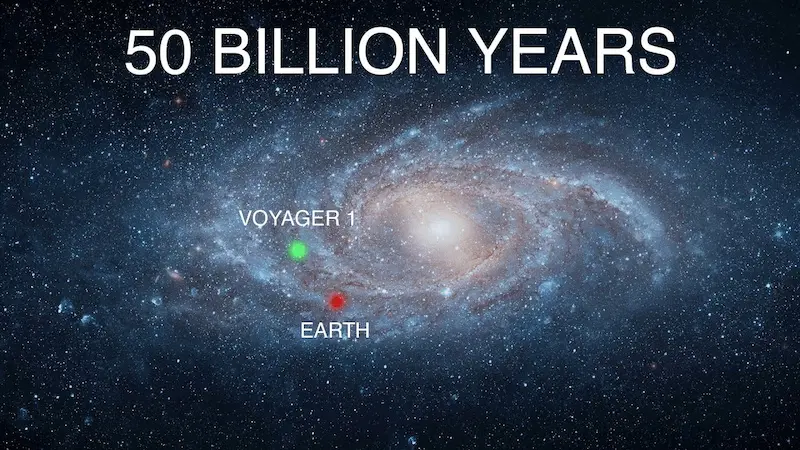 届时,旅行者1号将距离地球259亿公里,这段距离光只需要1天,它耗时近50年。