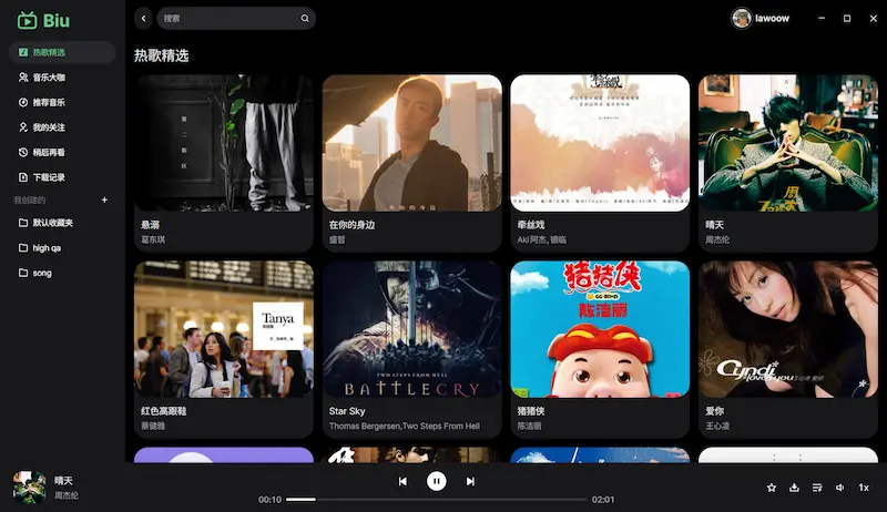 一个开源的跨平台桌面应用,基于 API 来搜索和播放 Bilibili 平台的音乐,支持登录获取收藏夹歌曲。(@wood3n 投稿)