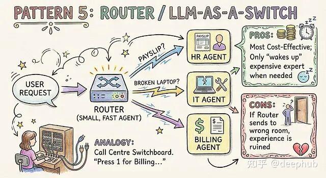 一个轻量快速的路由器智能体判断用户意图,把请求精准转发给对应的专项智能体。
