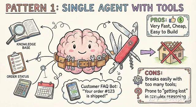 速度快、成本低、搭建简单。但工具一多就容易出错,复杂推理场景下容易"走丢"。