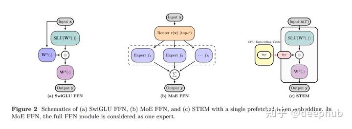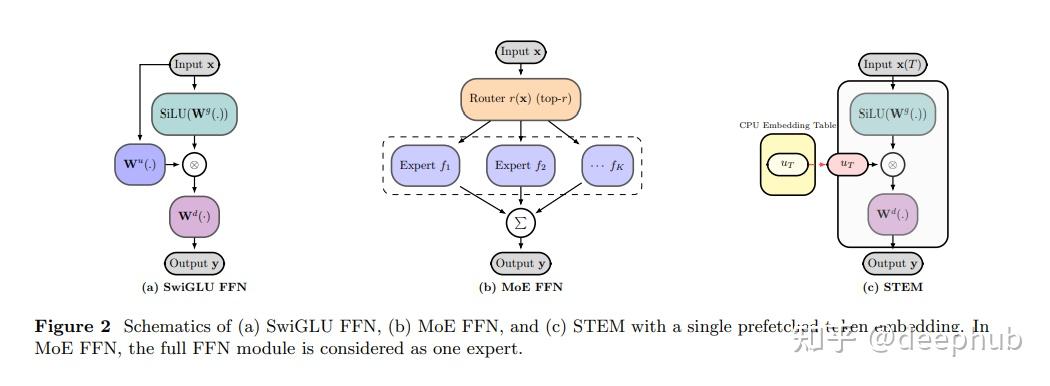 STEM它把Transformer里FFN的上投影层换成了嵌入查找表,门控和下投影继续保持稠密,论文中说Transformer 中的前馈神经网络(FFN)层往往承担了大量的“知识存储”功能,而这种存储本质上类似于键值对(Key-Value)的查找。这个的确是和DeepSeek的Engram思路上有想通之处,但是方法不一样。