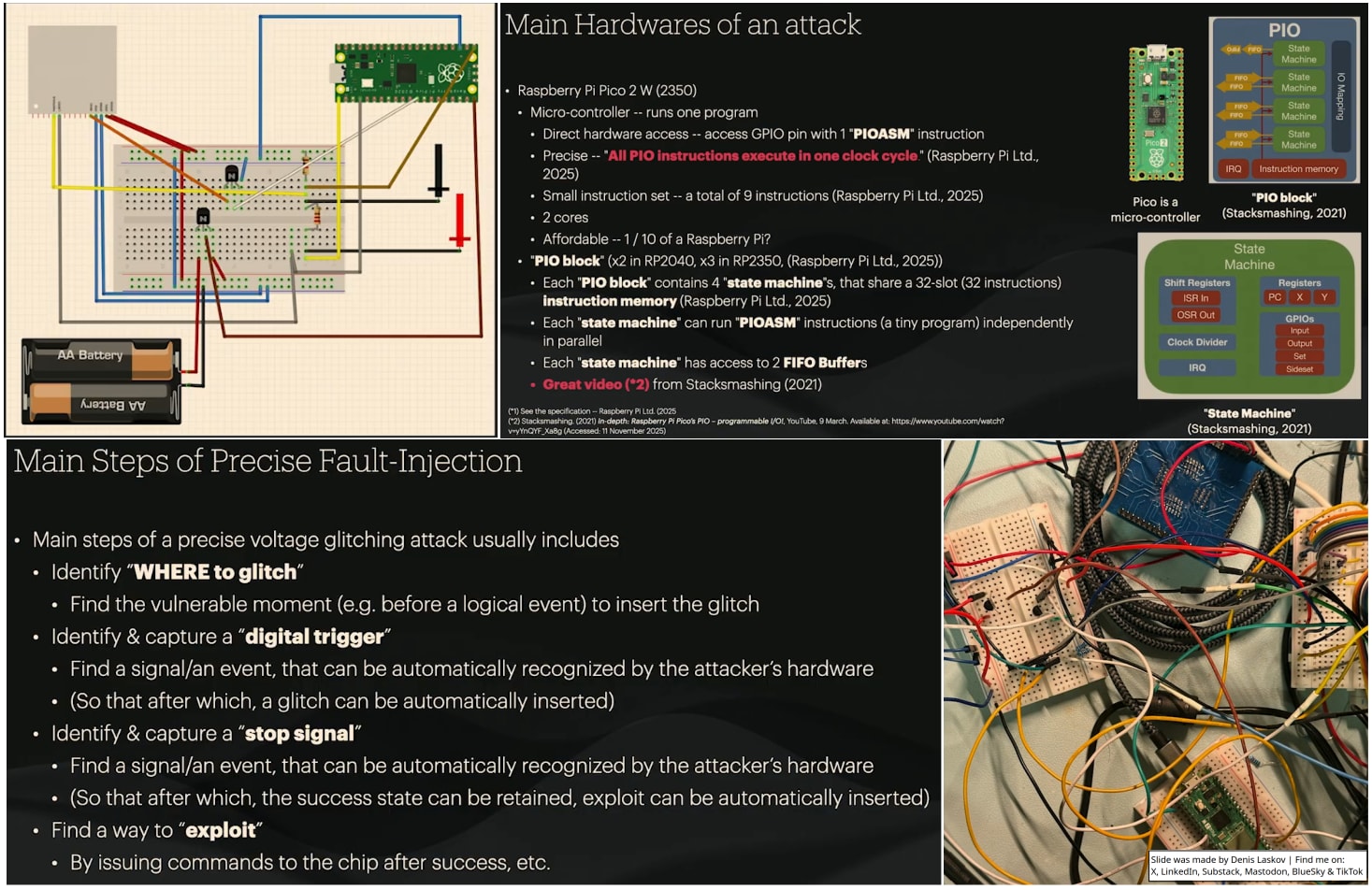 Security researcher Tongren Chen presents a new, simpler way to hack microcontrollers using precise voltage glitching, powered by a Raspberry Pi Pico. The key idea is: don’t fully understand the protocol - just record it and replay it.