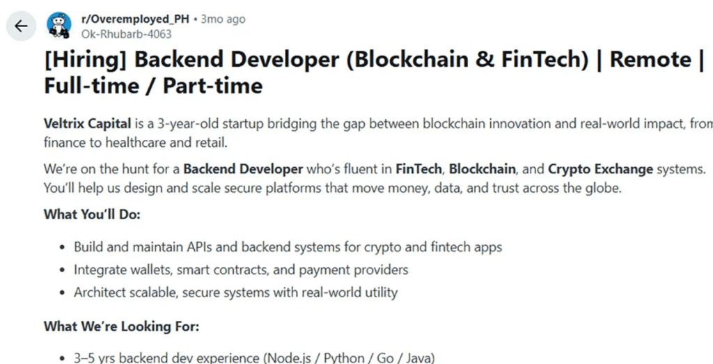 Victims are lured through Reddit, Facebook groups, LinkedIn, and direct recruiter messages. Some recruiters appear real, adding credibility, but disengage when questioned about the company.