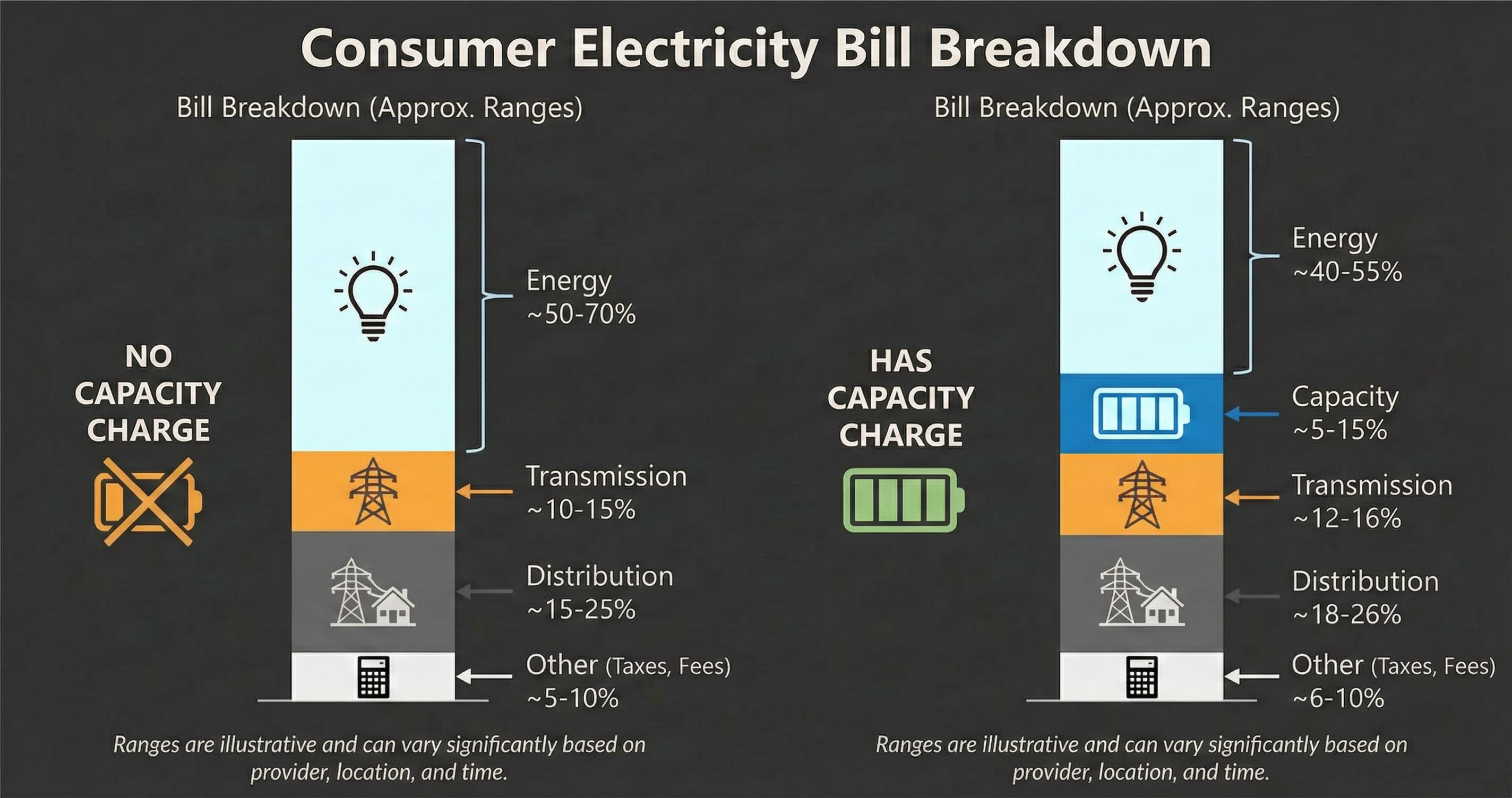 Let’s start with a brief explainer of what “capacity” actually is, how it flows to your monthly bill, and then dig further into market designs.
