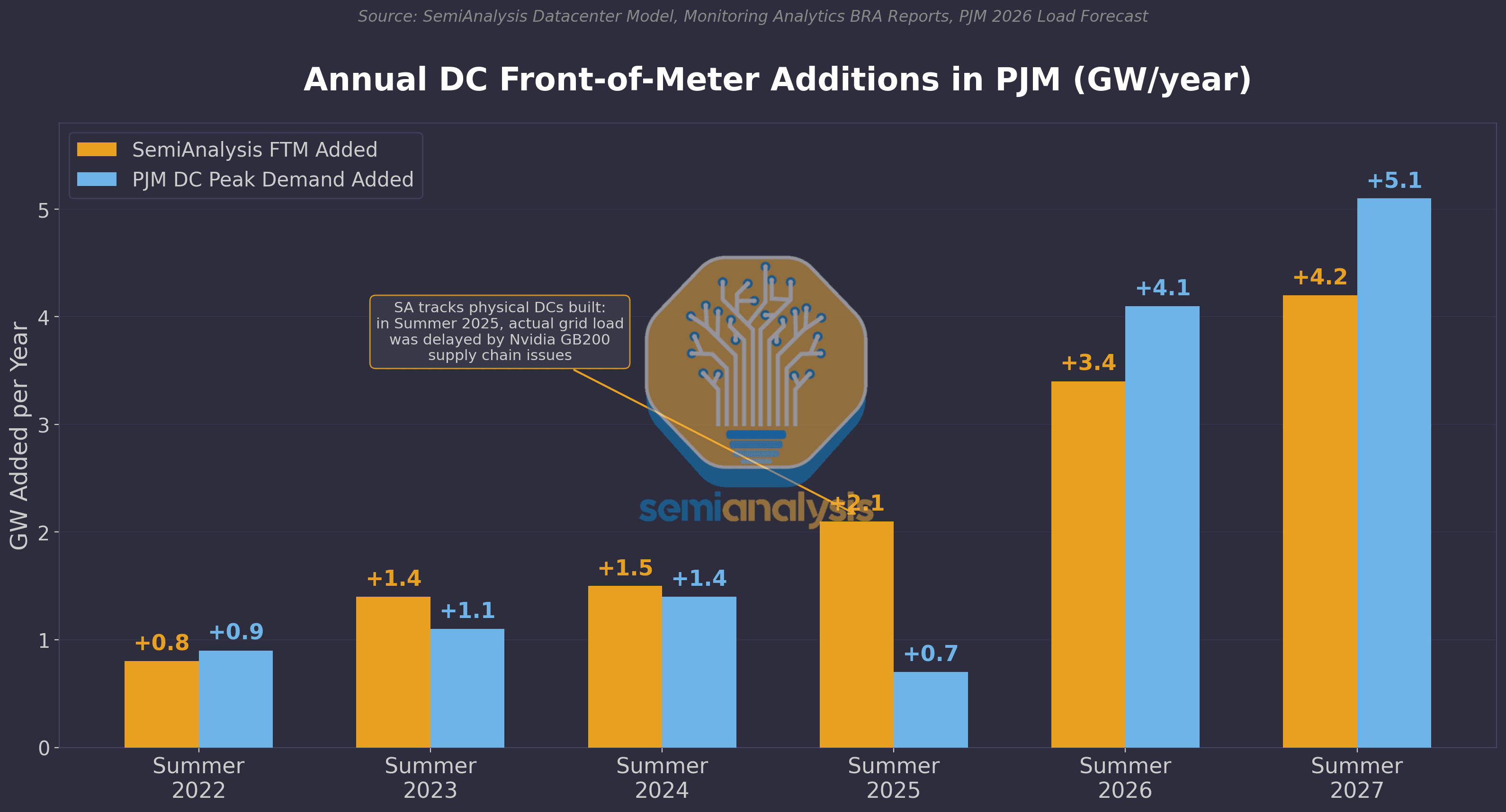 And we believe the forecast is inaccurate. Our methodology tracks precise construction timelines of every single datacenter in the PJM area and shows PJM’s forecast is likely too optimistic. This is not due to a lack of demand, rather it’s due to datacenter construction delays (as highlighted in our Industrials Model), to GPU production and assembly delays (as explained in our Accelerator Model), and other supply chain issues. New hardware platforms are often buggy at first and longer-than-usual to turn on at full capacity.